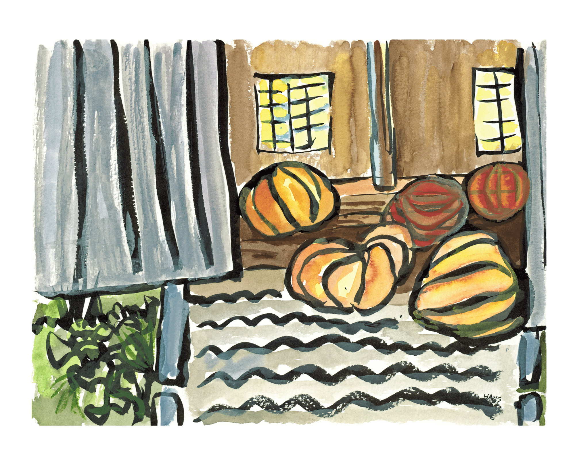 Broken Window Hillgirt, Gouache, 4.75 X 4.25 in, 2000