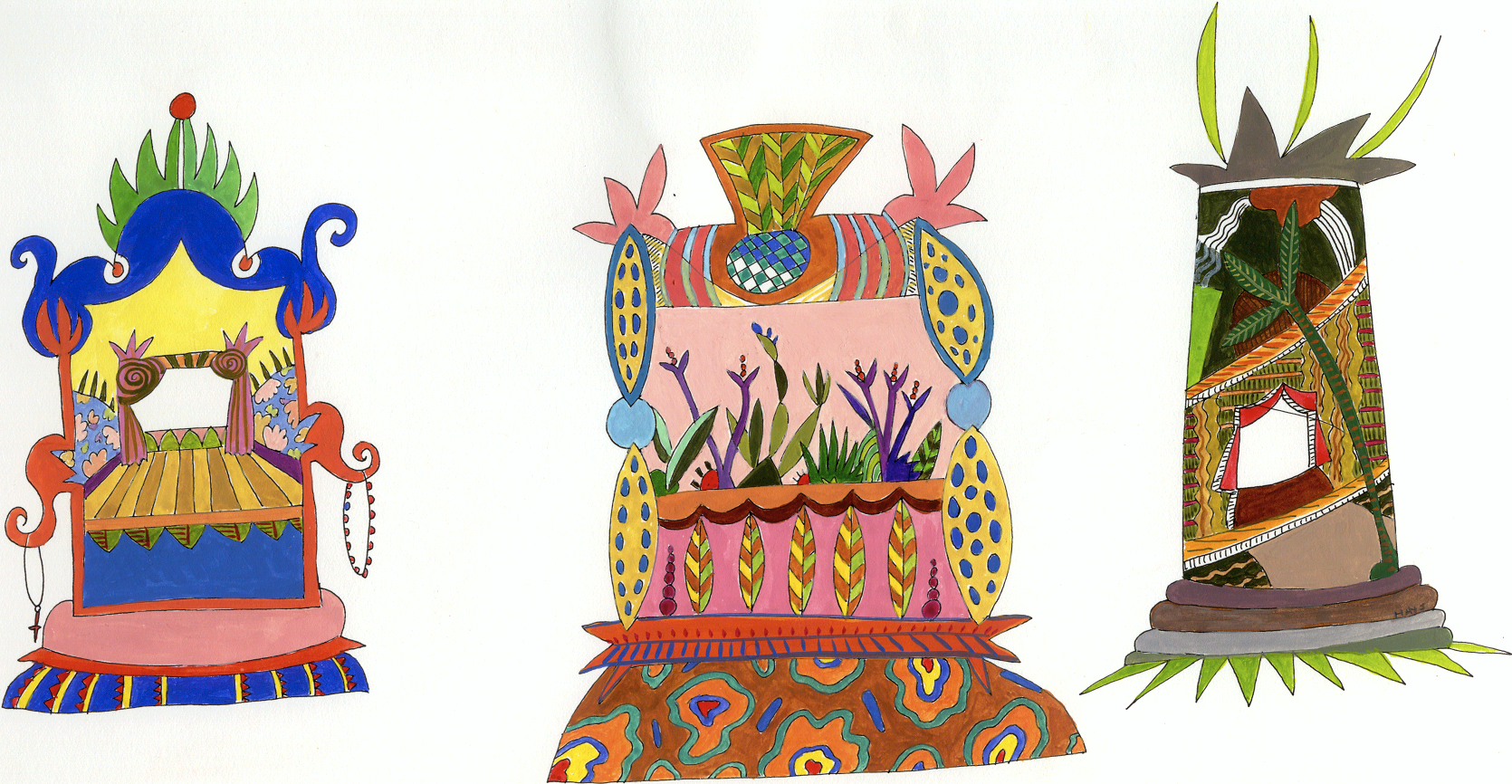Earthly Altars, Gouache, 6.5 X 7.5 in, 2003