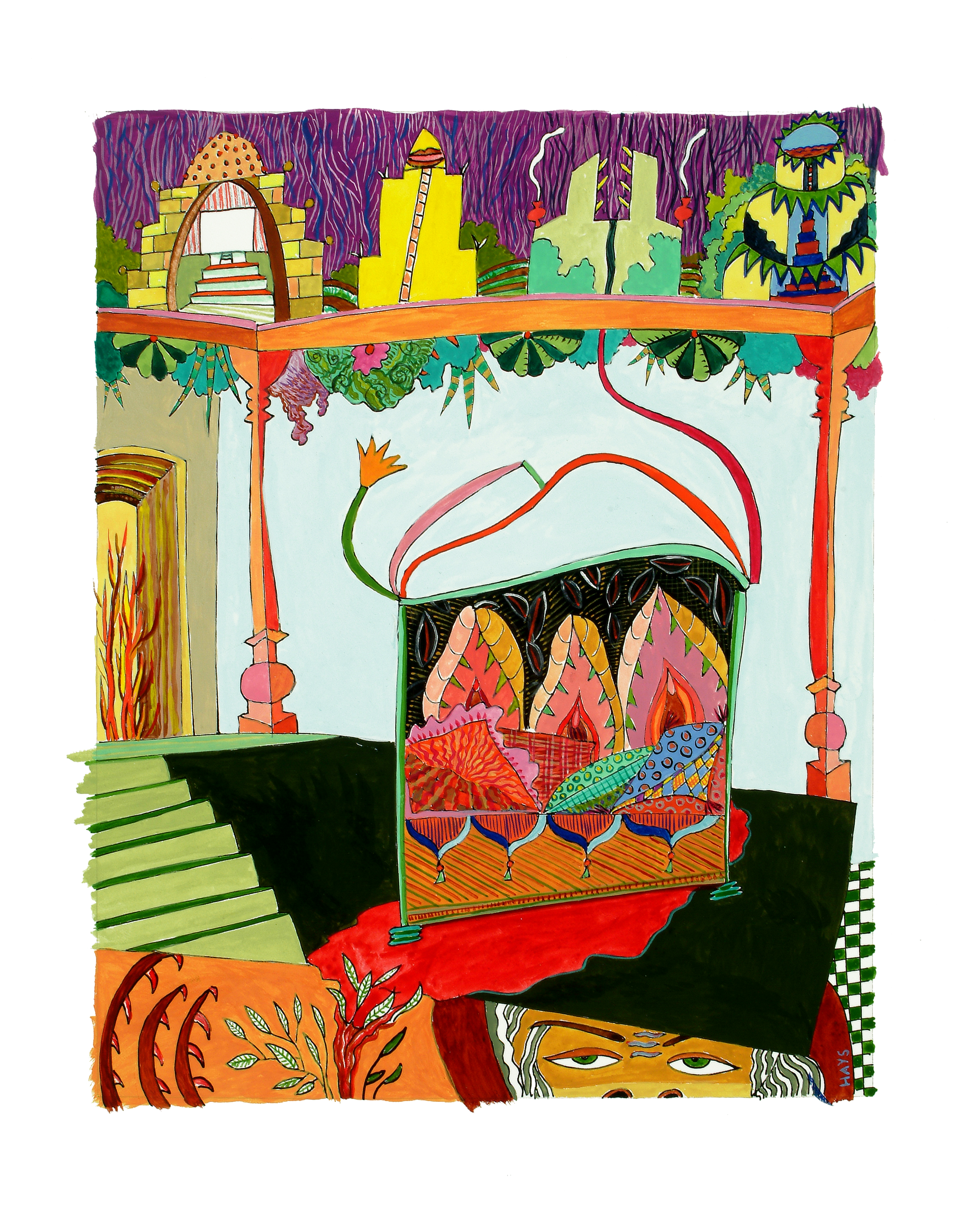 Dragonfly Temple, Gouache, 5.25 X 7 in, 2002