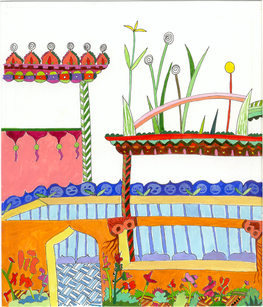 Multi Level Garden, Gouache, 6.75 X 5 in, 2002