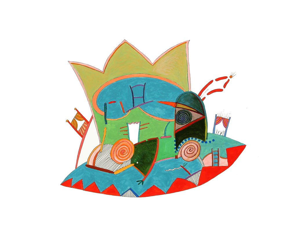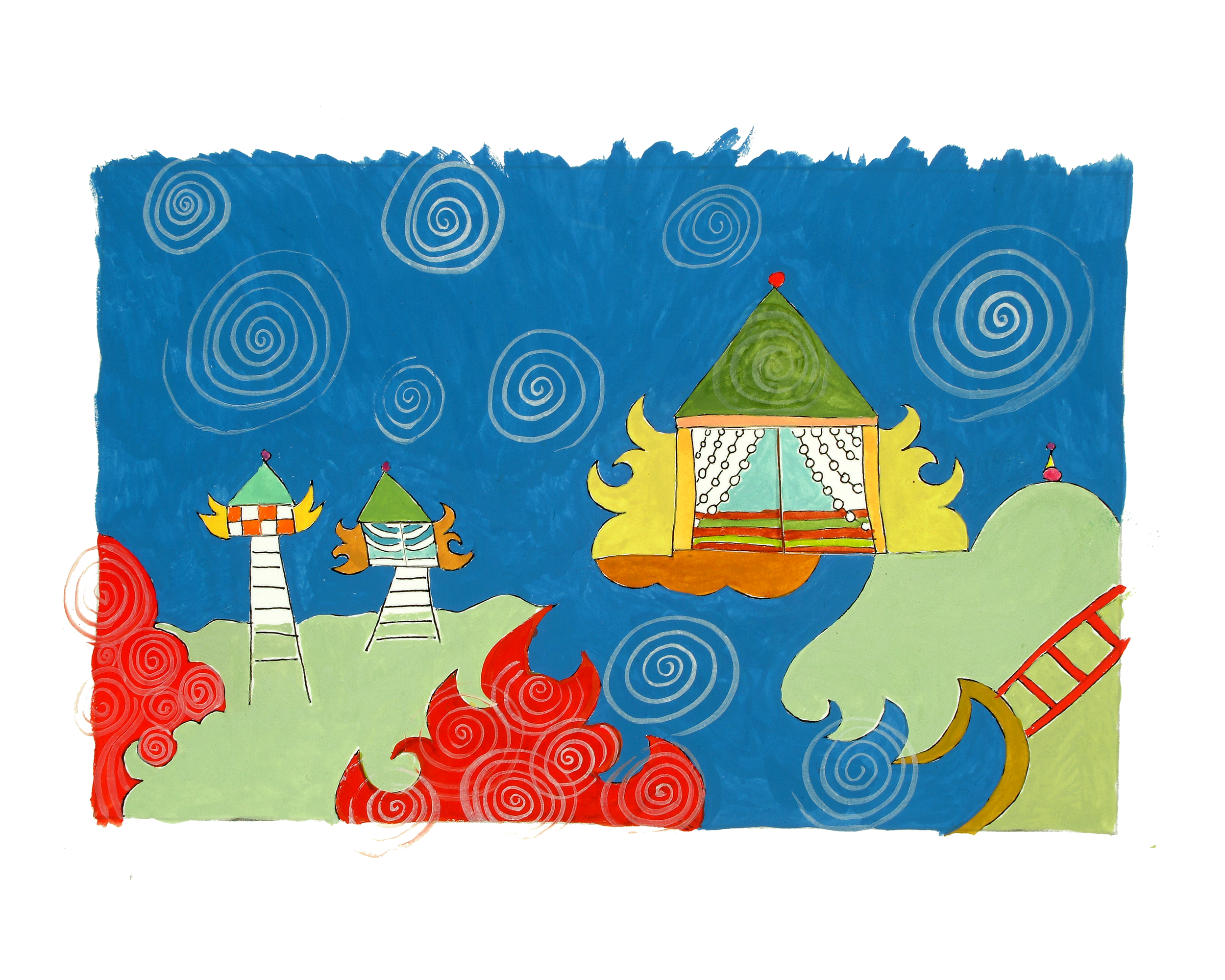 Grounded Temple, Gouache, 10.5 X 8.25 in, 2004