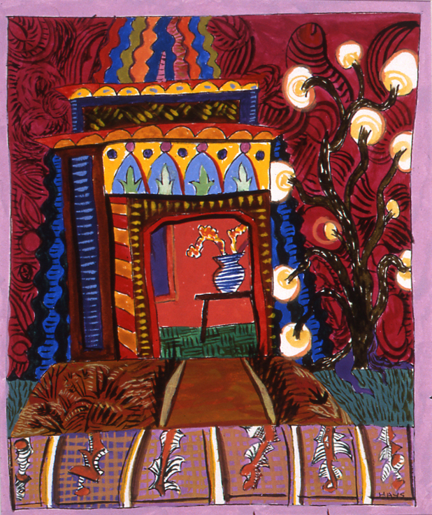 Temple Of The Lightning Bug, Gouache, 4 X 3 in, 2003